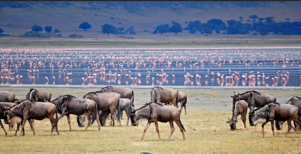Lions walk openly. Buffalo rest near the road. Flamingos stand motionless in the soda lake. With luck, you might glimpse a rare black rhino in the distance. You’ll spend hours in the crater, pausing only for a bush breakfast or quiet moments by the hippo pool.